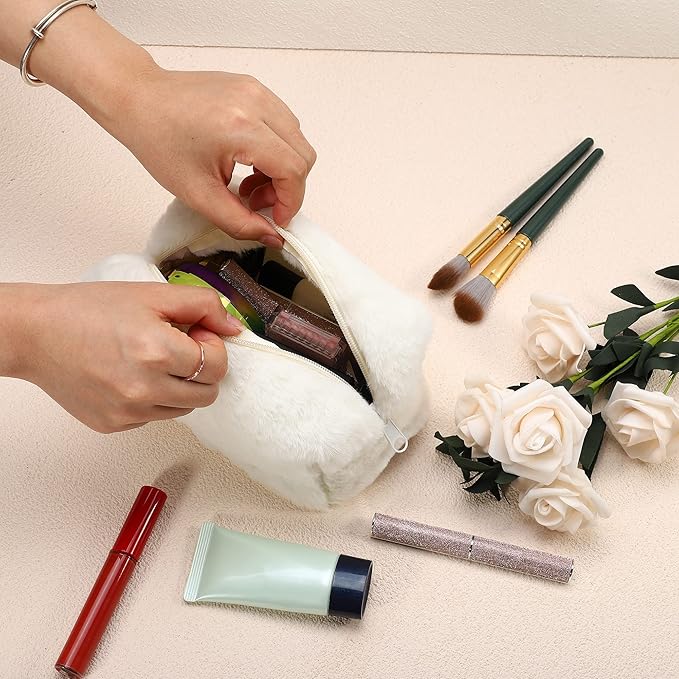 VOCOSTE 小さなぬいぐるみメイクアップバッグ ソフトビューティーコスメバッグ かわいい旅行用ジッパー トイレタリー バッグ 多機能 オーガナイザーポーチ 女性用 白