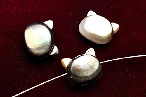 【材質】【3粒セット】(横穴)ぷっくり可愛い!ブラックシェル猫10mm 10mm