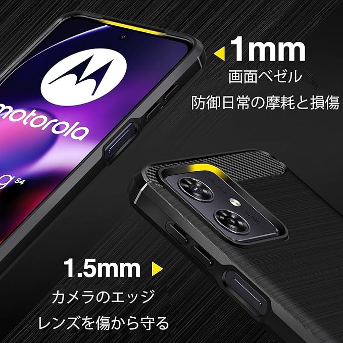 【全面の保護】Motorola G64 5G/G64Y 5Gの曲線に従う高低差設計。液晶画面やカメラレンズより1mm、1.5mmほど高め、卓上に置いても傷がつきにくく、併用のガラスフィルムまでも保護できる。