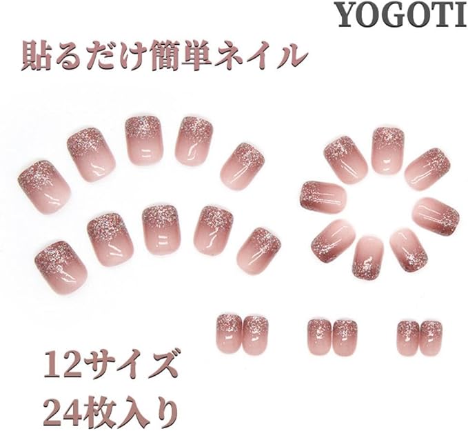✿【商品内容・サイズ】ネイルチップx24枚+ネイル用両面テープx24枚+ウッドスティックx1本+爪やすりx1個。 アジア人の爪のサイズを調査して作られたチップが24枚&12サイズ入ります、いつでも楽しめます。