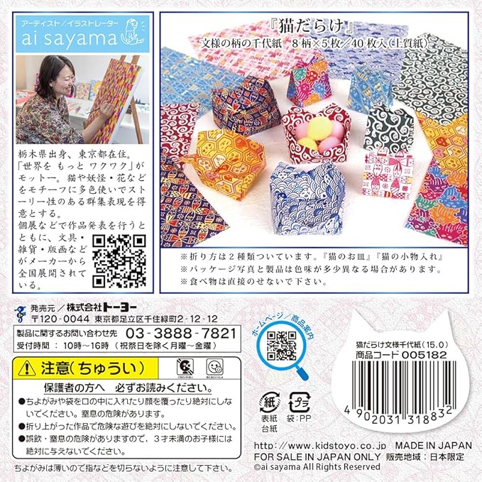 トーヨー ( Toyo ) 折り紙 文様 千代紙 猫だらけ 15cm 15cm 8柄各5枚 40枚入 005182