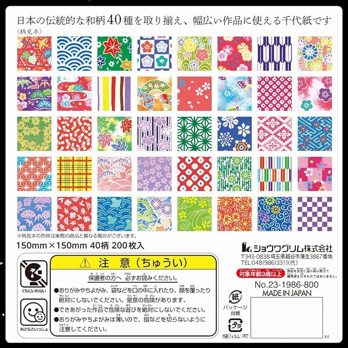 【おりがみ内容数】40柄 各5枚 合計200枚入り