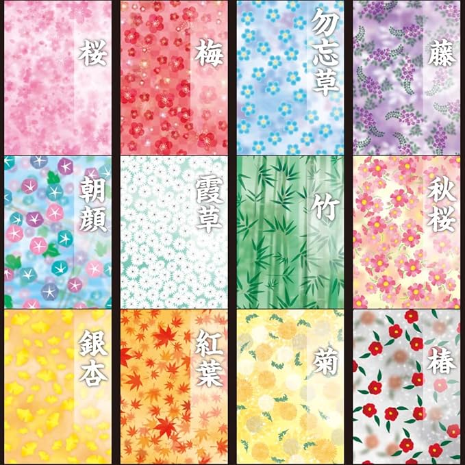 色鮮やかな季節をイメージした花柄の折り紙。時期折々の色彩をお楽しみください。
