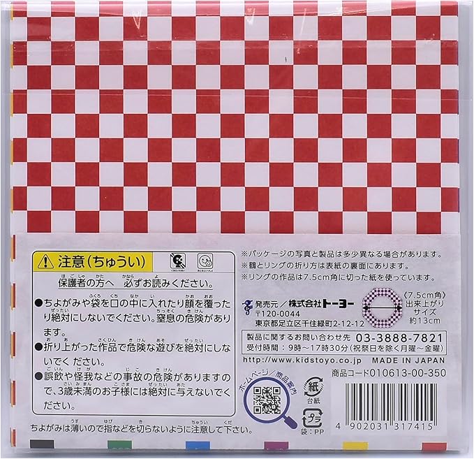 トーヨー ( Toyo ) 折り紙 和紙 千代紙 彩り市松 15cm 15cm 6色調各4枚 24枚入り (鶴とリングの折り方つき) 010613