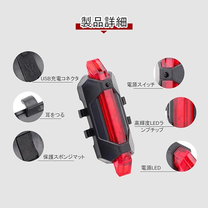 ポータブル設計:テールランプはコンパクトで軽量で、携帯に負担がないのに驚くほどの明るさで、密封防水で、雨の日でも安心して使用でき、天候に制限されず、耐久性と信頼性のある照明サポートを提供し、自転車に乗ることをさらに安心させます。