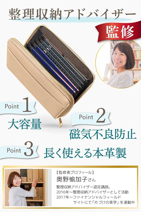 通帳ポケット 8、カードポケット 12、フリーポケット 2、外ポケット 1。