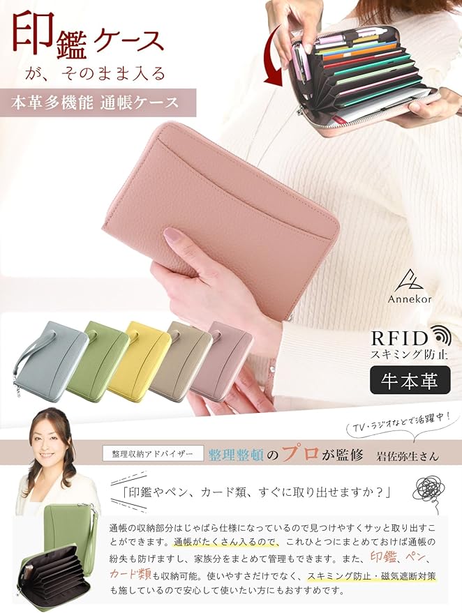 ✅【印鑑ケースもそのまま収納できる!】 ありそうでなかった“印鑑ケースをそのまま入れられる”通帳ケースが誕生。印鑑ホルダー1か所に加え、ペンホルダーも搭載。ATMや銀行窓口でもスマートに対応できる、通帳まわりをひとまとめにできる便利なオールインワン設計です。