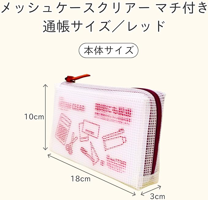 【カラー】レッド(ファスナー) 【サイズ】通帳サイズ