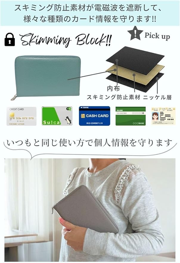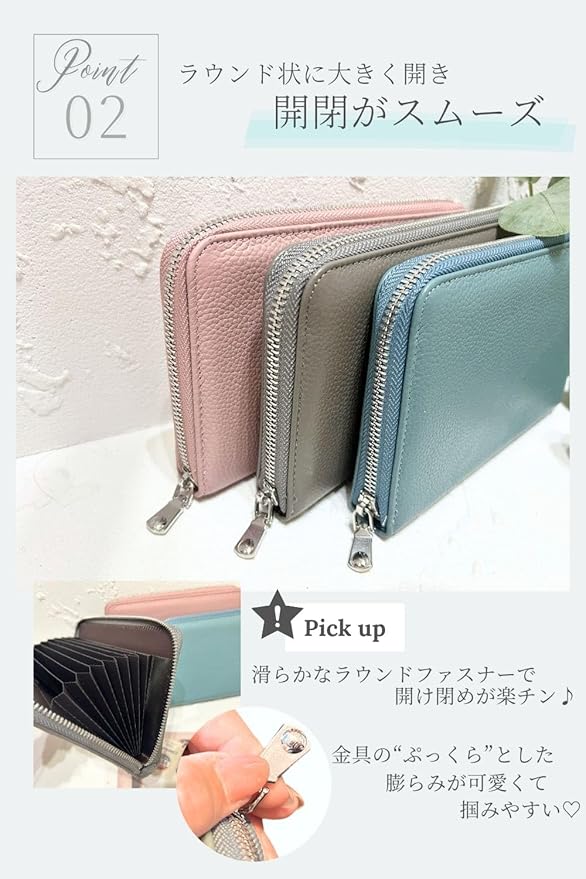 通帳とカードを同時に管理でき、軽量で持ち運びしやすいサイズとなっています。大容量でありながら、貴重品をまとめて管理できるため、お出かけ時にも便利です。