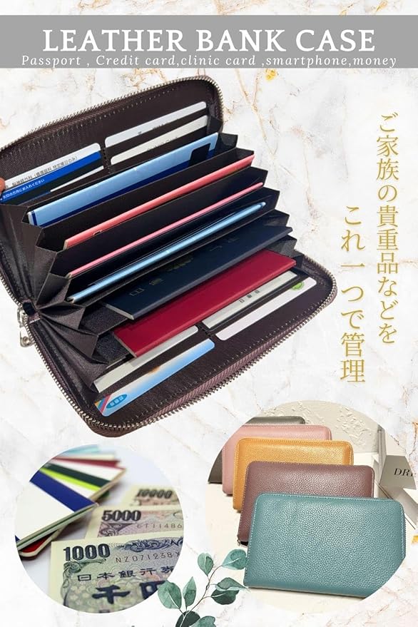 厳選された本革を使用することで、長い間ご愛用いただける製品になっています。通帳やカードを効率的に管理できるこのケースは、安心感と利便性を提供します。