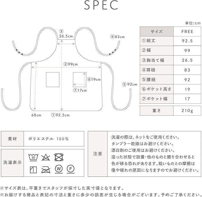 【着こなし方いろいろ!】肩ひもの長さが3段階で調整可能です。お好みに合わせて調整していただけます。腰ひもを前結びするとウエストをスッキリ見せられます。ゆったりと着たい方には後ろ結びがおすすめです。また、肩紐をクロスさせずに着ることもできるので、お気に入りの着こなしで毎日の家事やお仕事をさらに快適に!