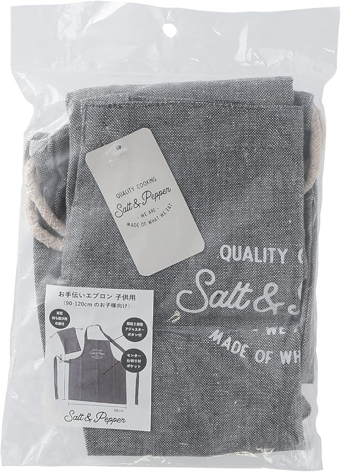 落ち着いた色味と英字のロゴがおしゃれなカフェ風の子供用お手伝いエプロン。