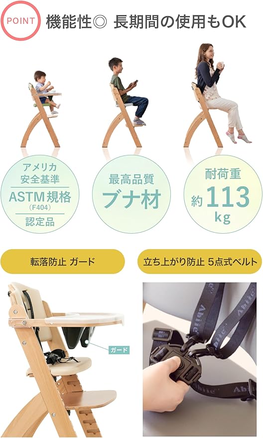 ✅【ビヨンドジュニア(Beyond Junior)のスペック】高さ:890mm x 幅:500mm x 奥行き:530mm (設置時)、 高さ調節9段階、テーブル奥行き2段階調整可能、耐荷重約113kg、カラーバリエーションは9色 ※耐久性に優れたヨーロピアンビーチウッド(ブナ)材を使用、不具合や故障の場合は修理またはパーツ(有償)対応、アフターケアサポートばっちりの安心品質ベビーチェア