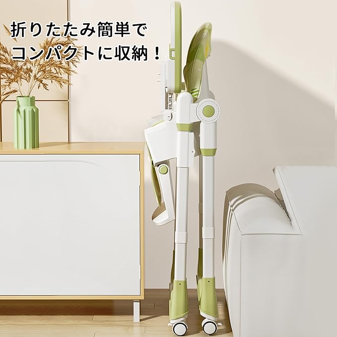 【5点式保護ベルト・収納かご付き】お子さまの落下を防ぐ安全ベルト付きで、離乳食を始めたばかりの月齢の低いお子さまでも安心してお使いいただけます。収納かごが付属していて、オムツ、哺乳瓶やおもちゃんなどをそれぞれ入れ安くて、空間を十分に利用できます。