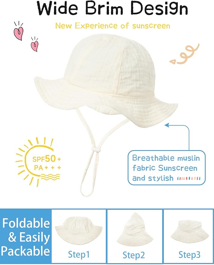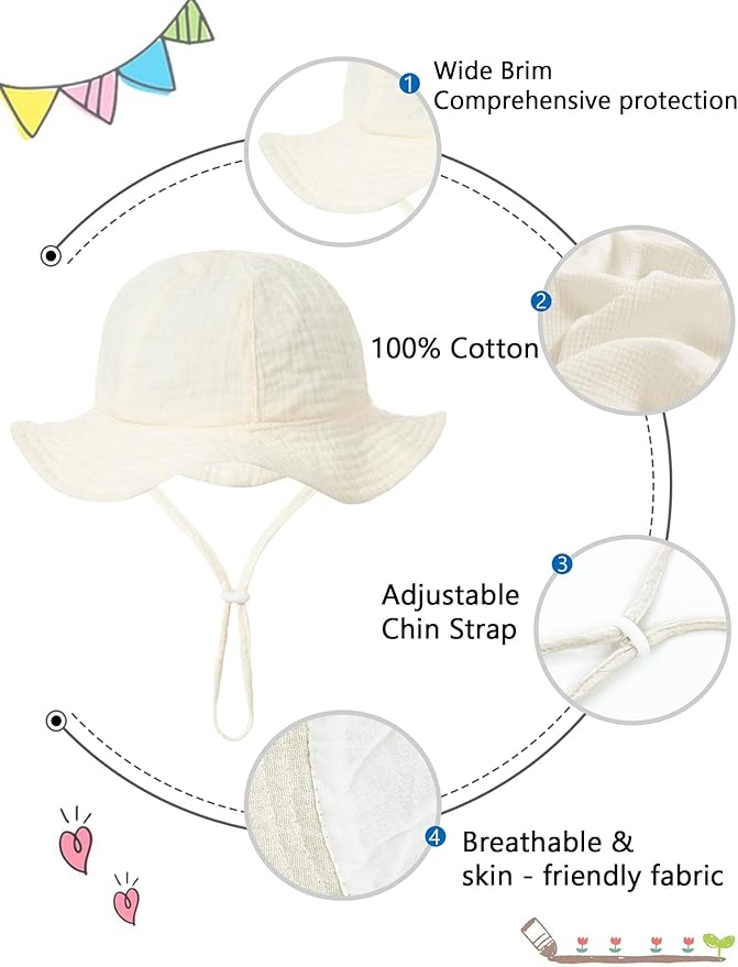 [Maeau] ベビー 帽子 100%コットン 3~12ヶ月 顎ひも 赤ちゃん 夏 ハット 女の子 男の子 つば広 日除け帽子 新生児 綿 春 0歳 調整可能 出産祝い サンハット 折り畳み 子供 おしゃれ uvカット