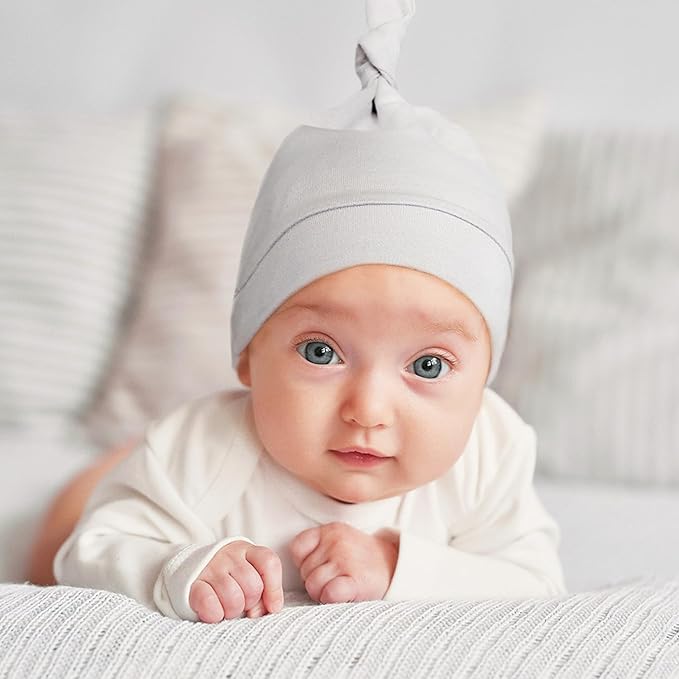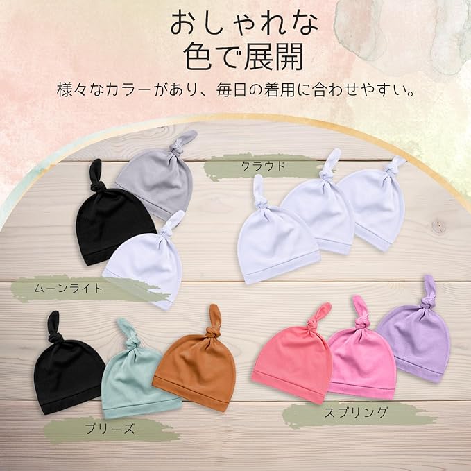 成長と共に使える新生児帽子: 当社のベビー帽子は、結び目と伸縮性のある生地でデザインされています。2サイズ展開で、成長に合わせてお選びいただけます。
