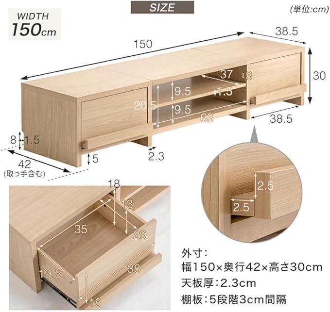 【サイズ】外寸:幅150 奥行42 高さ30cm