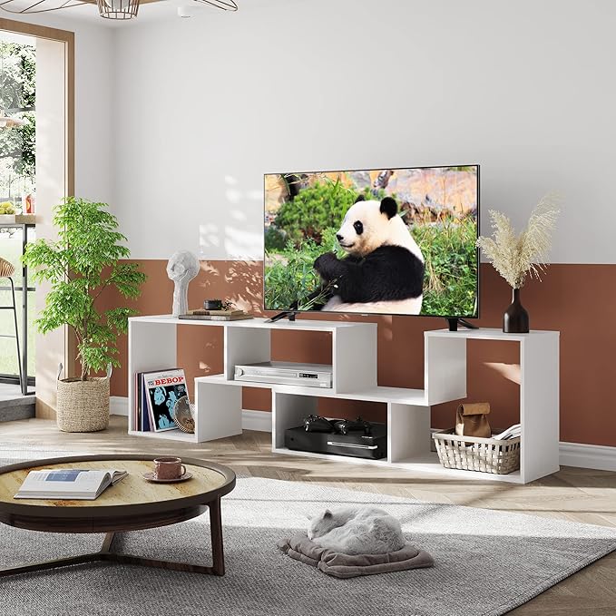 「伸縮・角度調整するテレビ台」幅や角度を自由に変えることができる特別な伸縮スタイルです。お客様は自分のニーズに応じて自主的に調整できます。これにより、お客様の家に最大限に適合し、独自のDIYを実現できます。また、L字型にも出来、コーナースタイルのレイアウトも可能です。
