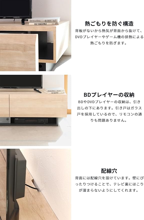 LOG-3512GH NAは、テレビ周りの収納を徹底的に考えたローボードです。