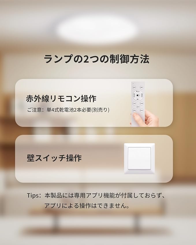 ⭐【便利なリモコン・壁スイッチ操作】リモコンで点灯・消灯はもちろん、調光・調色も長押し操作で12調整可能です(最大明るさで)。また、最大明るさボタンや15分・30分のタイマーボタンも搭載しており、使いやすさ抜群!壁スイッチ:壁スイッチを素早く切り替えると、昼白色 → 昼光色 → 電球色 → 夜灯の順に切り替わります。お好みの明るさに調整できます。