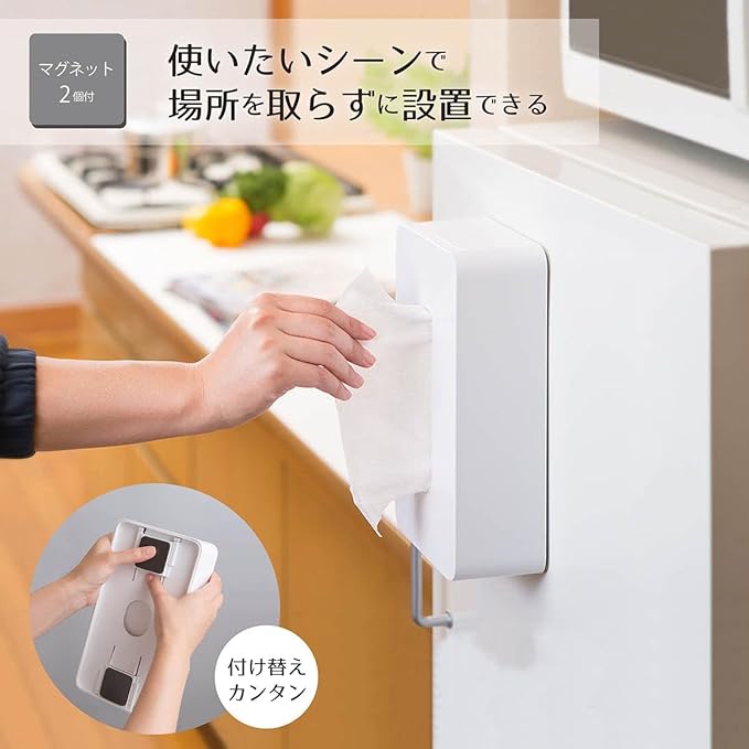 ●マグネットで冷蔵庫や洗濯機などにペタッとくっつき、使いたいシーンに合わせて使用できます。