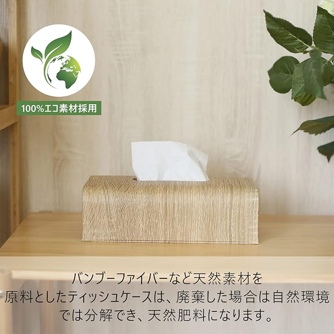 【エコ素材採用)】土に還りやすいエコ素材を使用した。天然素材を原料としたティッシュケースは、土に入れると3年〜5年で分解する性質をもち、自然環境への負荷を減らした地球に優しいECOな商品です。