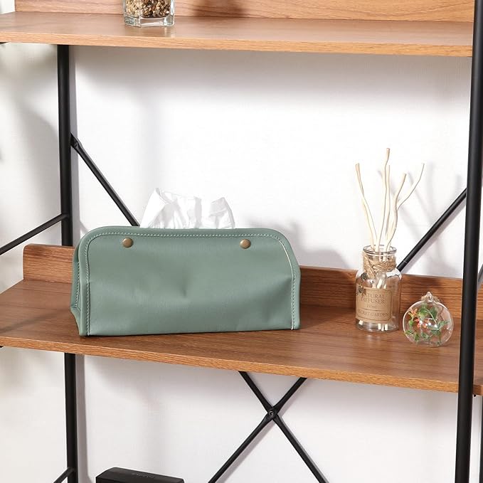 レザー調の素材と金色のボタンを使用した高級感のあるティッシュケース。