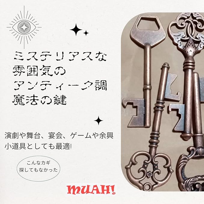 muAH! レトロ調 アンティーク カギ 古い 鍵 魔法 秘密 劇 小道具 宝物 保育園 幼稚園 こども園 文化祭 演劇 舞台 こども会 ゲーム 遊び 企画 まんが 映画 余興 栓抜き 合コン 鍵5本セット