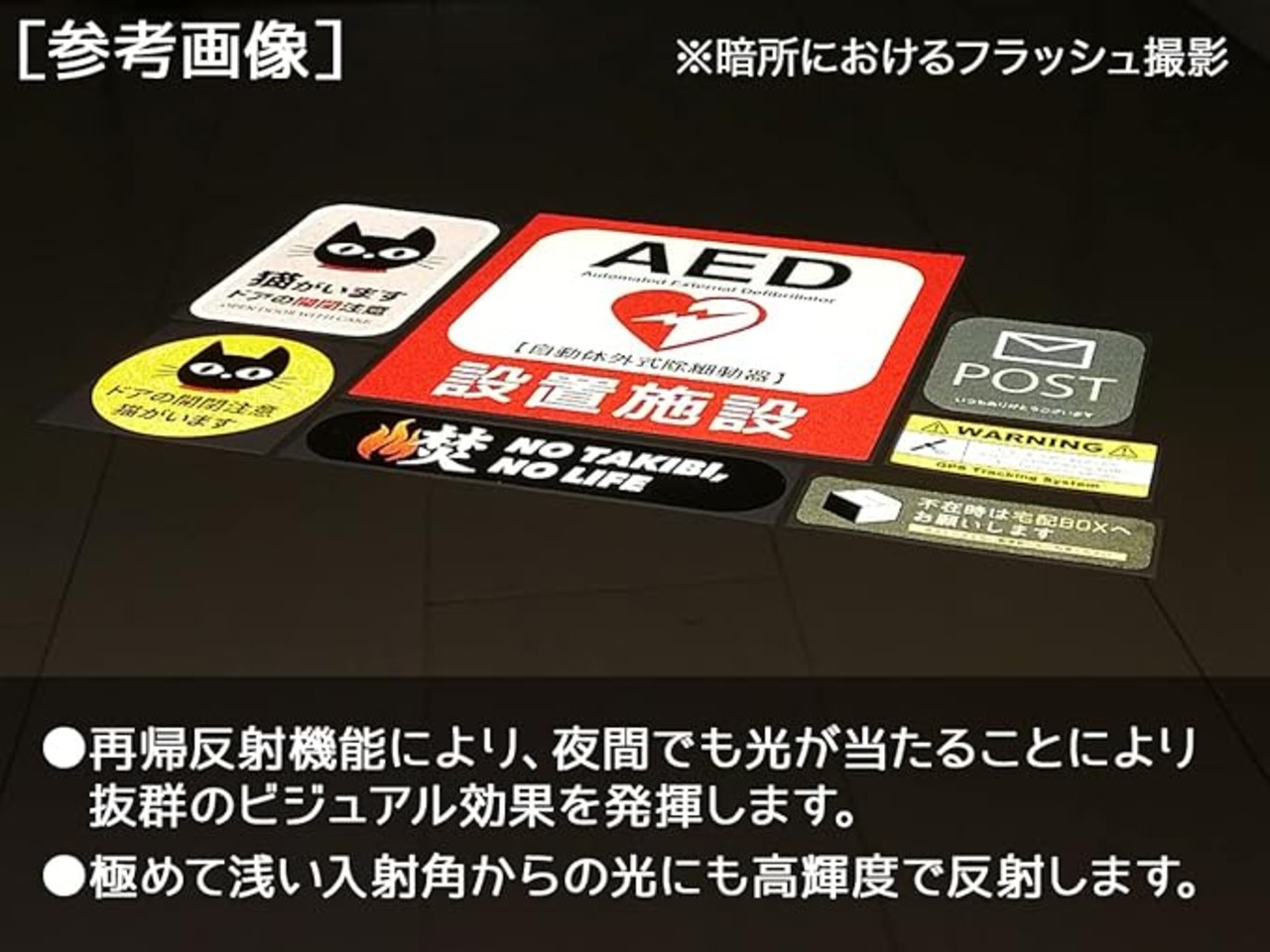 ■極めて浅い角度でもフルカラーで広角反射するので夜間も目立つ。 ■屋外耐候は驚異の5年(値ではありません)。塩ビ、ポリプロピレン(PP)製のステッカーのような早期退色・劣化はありません。 ■ハードコートで傷に強く、美観と反射機能が長持ち。■エナメルのような光沢と深みのある透明感は一般的なステッカーと比較して群を抜く高級感があります。 ■約240ミクロンの厚みと適度なコシで貼りやすい。 ■品質重視の高精細印刷。 ■キレイで長持ちする結局コスパの良いステッカー。 ■「反射ステッカー工房」はサブライムワンの商標登録(第6694321号)です。