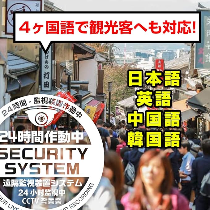 4ヶ国語表記で注意をうながし、広範囲に防犯をアピール!