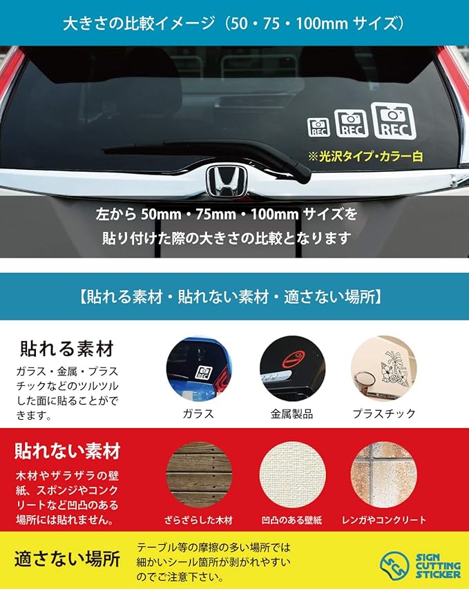 車のリアガラスやサイドガラスで煽り運転抑止・車上荒らし・防犯対策に最適です。防水・耐水・屋外耐候