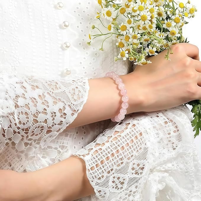 ◆素材:天然石. サイズ 粒直径6mm 内周 約16cm( 0.5cm) . ツヤ・輝き・透明度全てにおいてハイグレード ◆耐久性のある構造:最高級のストレッチブレスレット用ピンク色弾性糸を使用し、二重に加工して追加の強度を確保しています。結び目はビーズの穴の一つの中に隠されており、清潔感のある仕上がりを実現しています。 ◆ローズクォーツは、デュモルティエライトの微小な内包物から柔らかいピンク色を得るクォーツの一種です。この種類のローズクォーツは通常半透明で、穏やかな印象を与えます。 ローズクォーツは【愛・美・性の女神 アプロディーテー】の石と伝えられています。 アプロディーテーは、ギリシア神話では海の泡から生まれ、さまざまな愛の逸話が語り継がれています。 ローマ神話では日本人に聞き馴染みのあるビーナスにあたるとされます。 ◆職人が厳選した良質な天然石を使用した手作りアクセサリーです。お誕生日や入学祝い、就職祝い、昇進祝い、独立のお祝い、送別品、クリスマスなどのプレゼント用としてもご好評を頂いております ◆天然石になりますので、天然のクラック、へこみ、傷などがある場合がございます。ご質問がありましたら、お気楽にご連絡ください。万が一不良品が届きましたっら当方をご連絡ください。