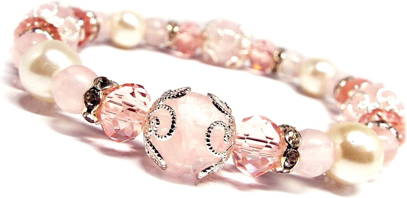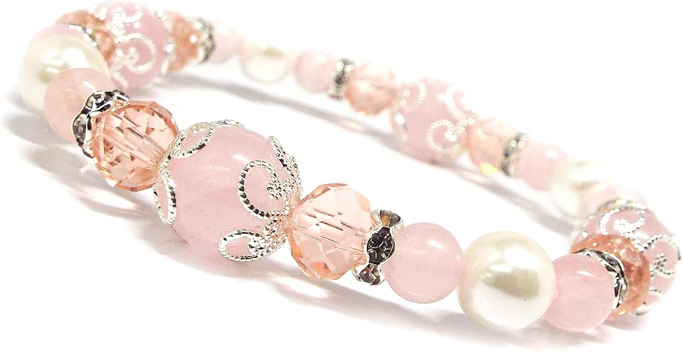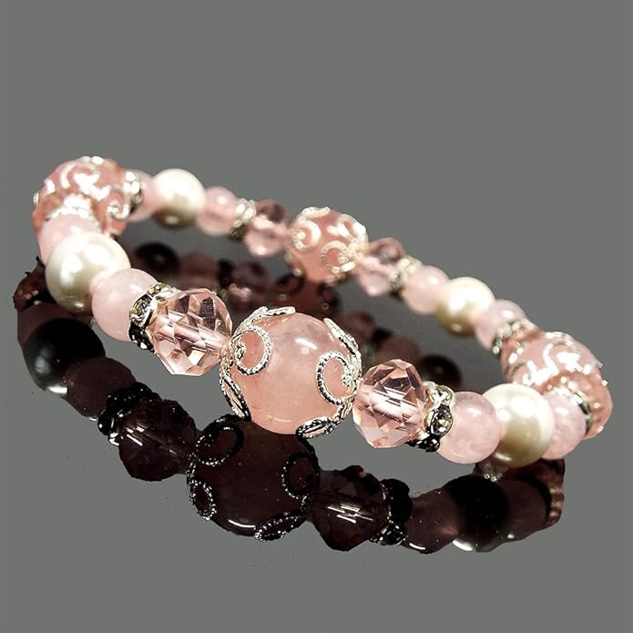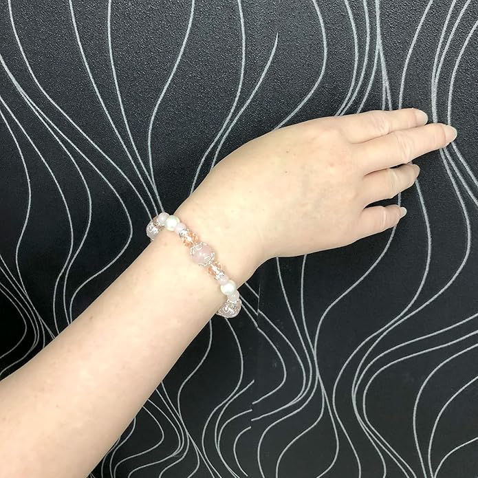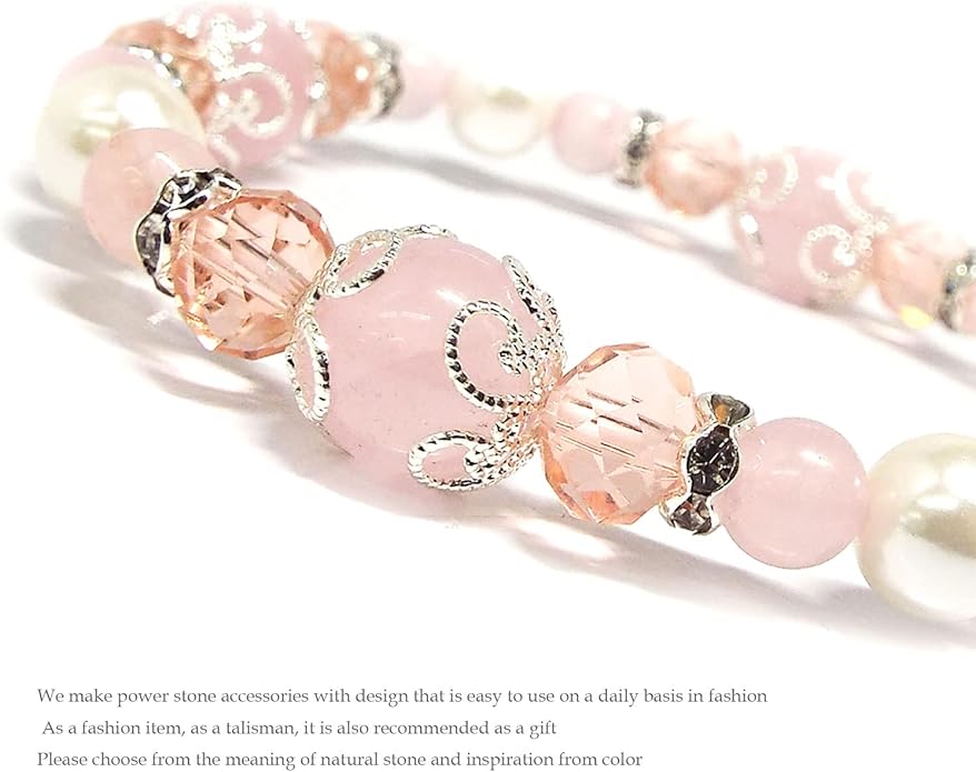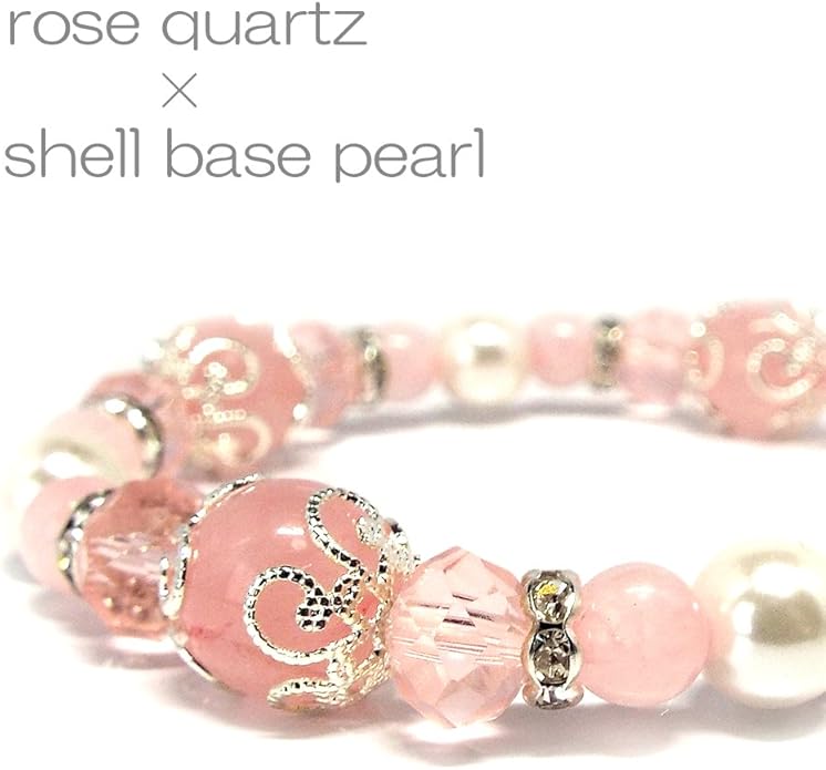 【SION】 天然石 パワーストーン ブレスレット ローズクォーツ シェルパール Strawberry milk