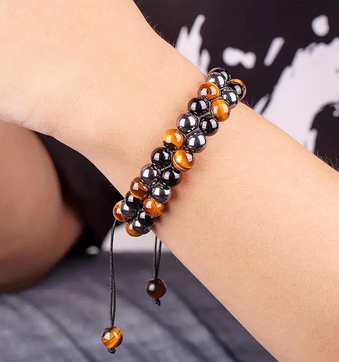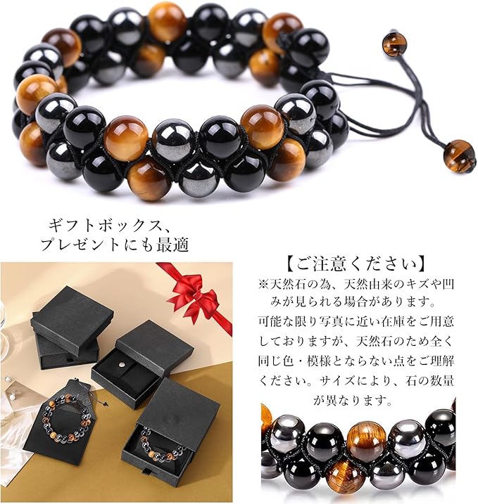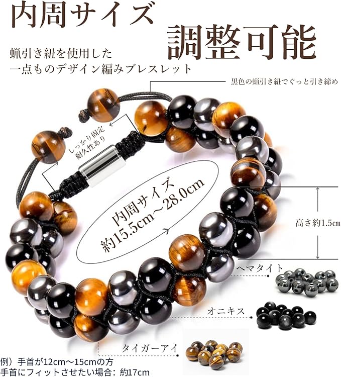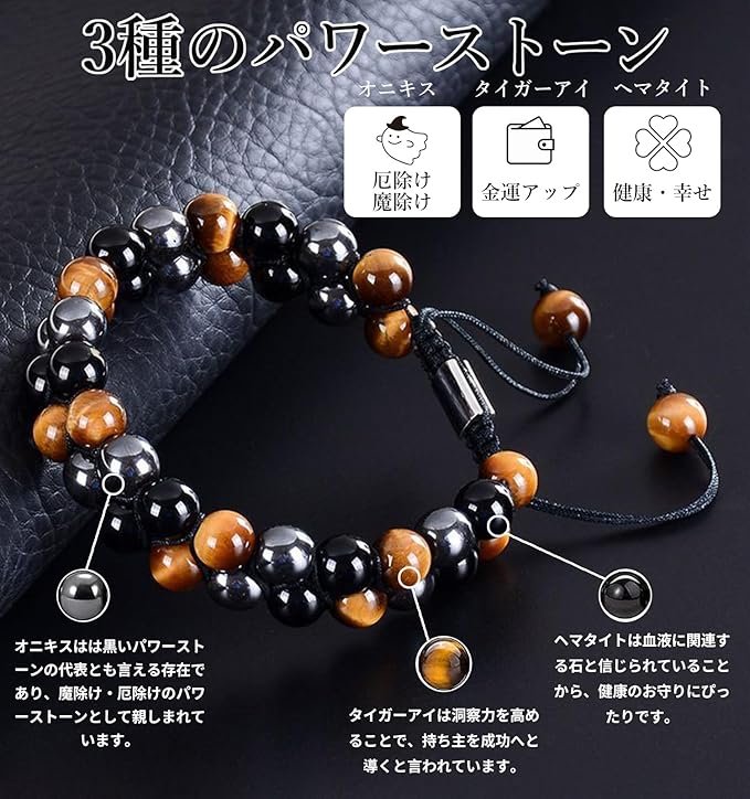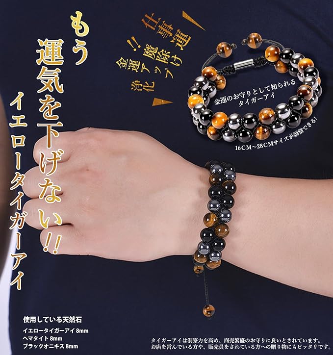 [MASHISO] パワーストーン ブレスレット 天然石 イエロータイガーアイ 浄化用 【金運UP・仕事運UP・恋愛運UP】 心の平和 浄化 魔除け 災除け お守り エネルギーチャージ タイガーアイ ブレスレット 男性用 女性用 サイズ調整可能 玉8mm ダブル
