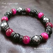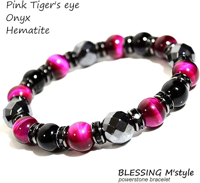 ピンクタイガーアイ10mm、オニキス10mm、ヘマタイト64面カット12mm