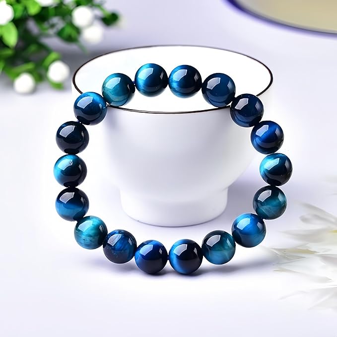 [LinnWell] マリンブルータイガーアイ ブレスレット 天然石 水晶 パワーストーン 幸運 運気アップ お守り ブレスレット アクセサリー プレゼント