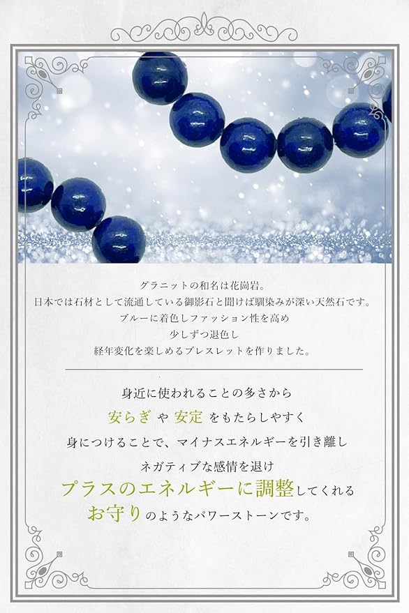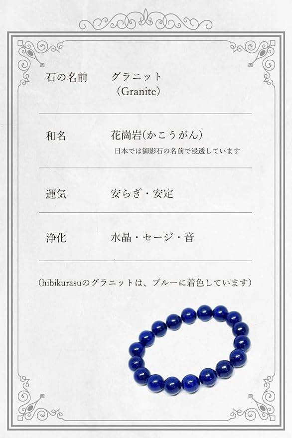 【hibikurasu】ブルー グラニット パワーストーン ブレスレット 数珠 花崗岩 御影石