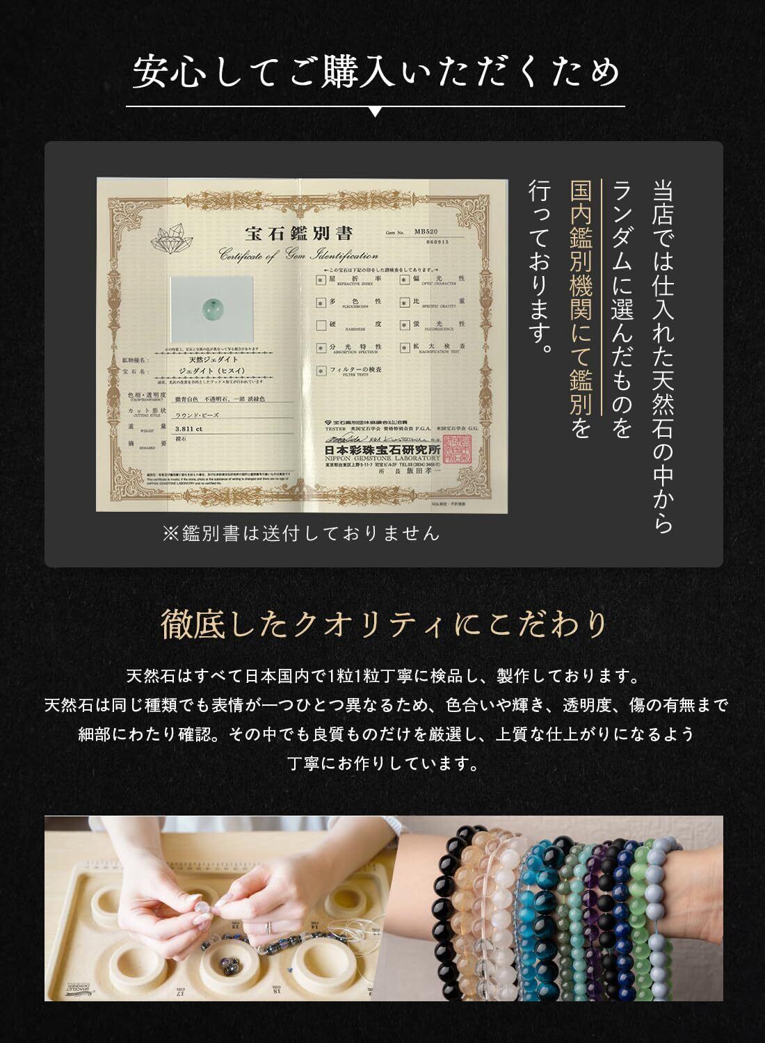 [京珠堂] 本翡翠 ブレスレット 天然石 パワーストーン ミャンマー産 ジェイド 浅緑