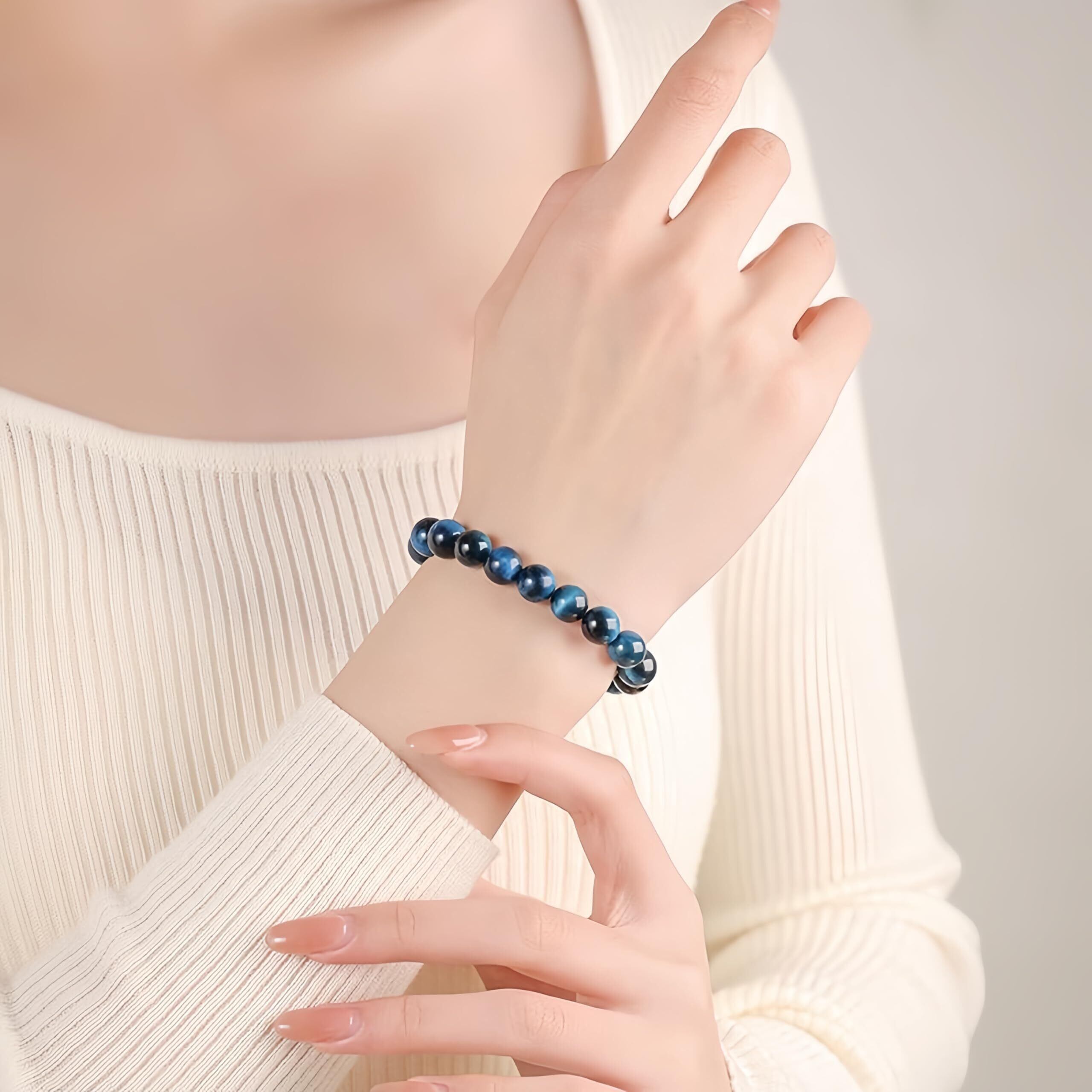 [LinnWell] マリンブルータイガーアイ ブレスレット 天然石 水晶 パワーストーン 幸運 運気アップ お守り ブレスレット アクセサリー プレゼント
