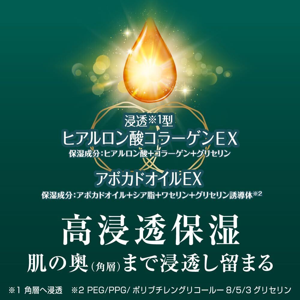 高浸透保湿で角層深く浸透し留まる。 うるおいに満ちたハリ・つや手肌に導く美容液ハンドクリーム。 美容液成分 1.浸透※1型ヒアルロン酸EX配合(保湿成分:ヒアルロン酸+グリセリン誘導体※2) 2.ボタニカルエキス配合(保湿成分:ニンジンエキス)。 無香料。 ※1角層へ浸透※2PEG/PPG/ポリブチレングリコールー8/5/3グリセリン
