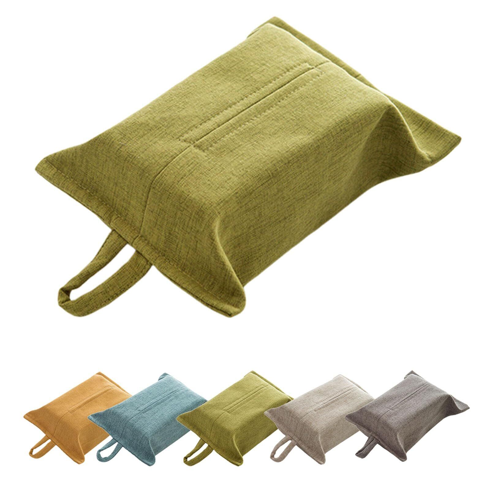 布製ティッシュケースカバー 吊り下げ 壁掛け対応 高級 おしゃれ 省スペース 車内 洗面所用 グリーン