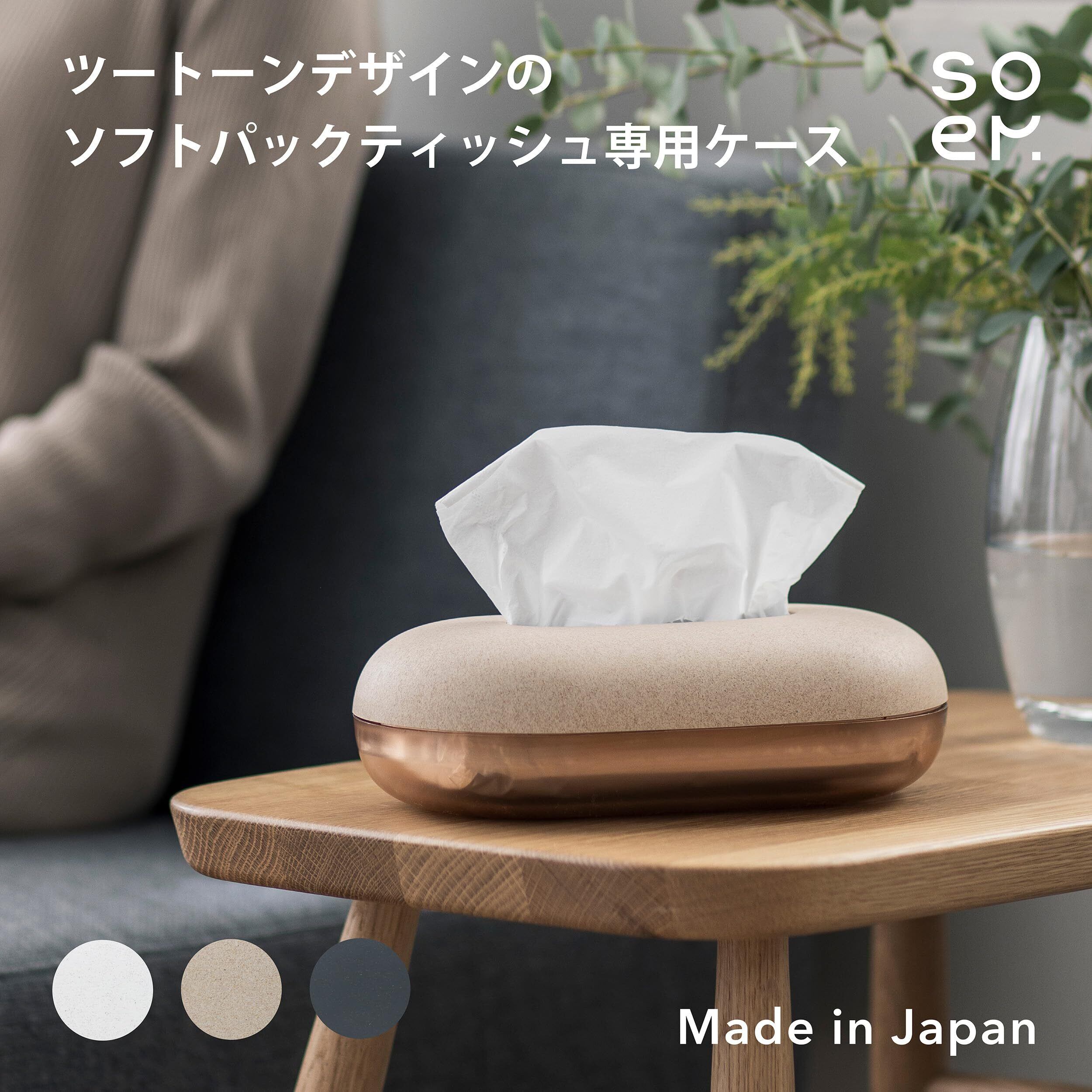 soem【残量がわかる】ティッシュケース ソフトパック用 WH [日本製] ティッシュカバー ギフト (ホワイト)
