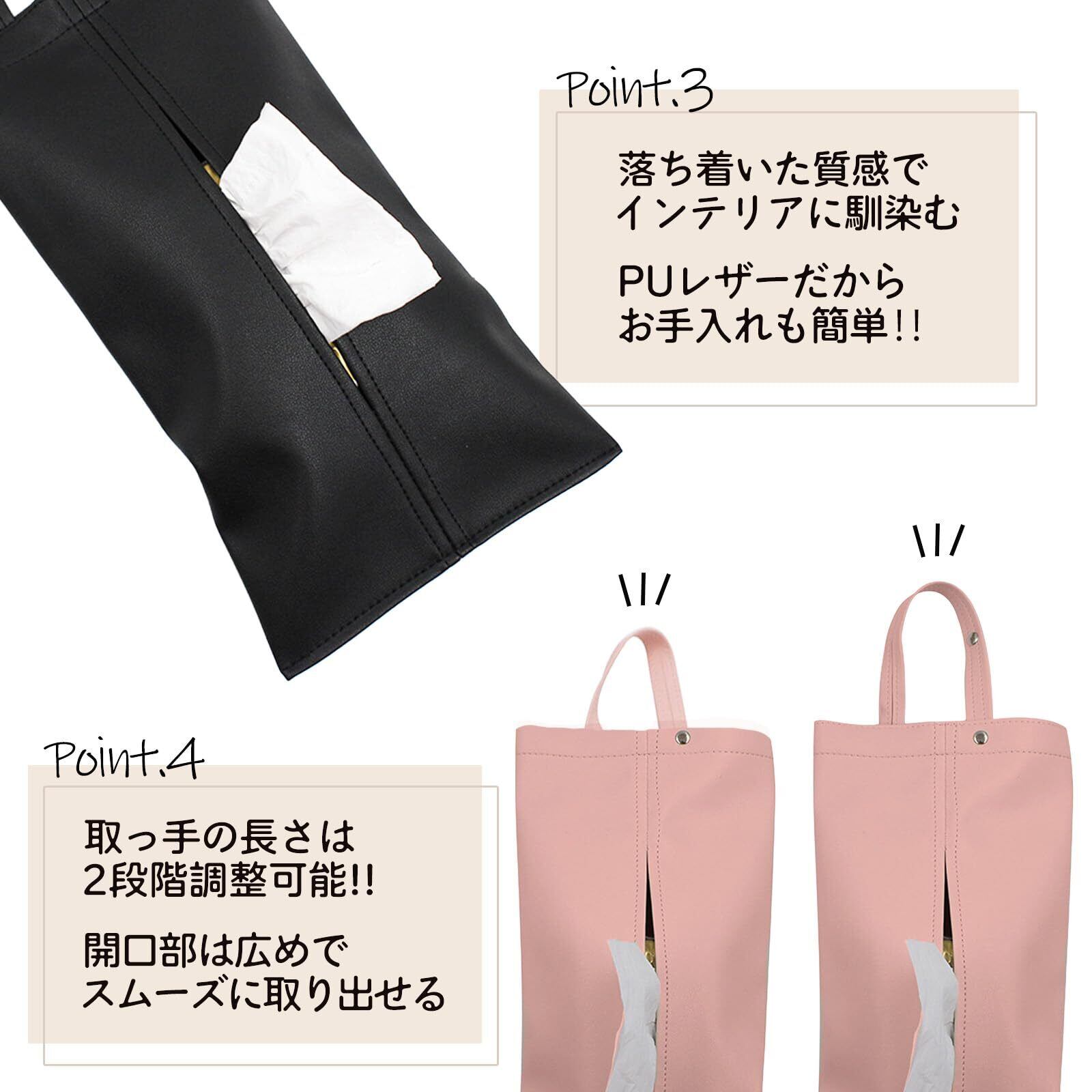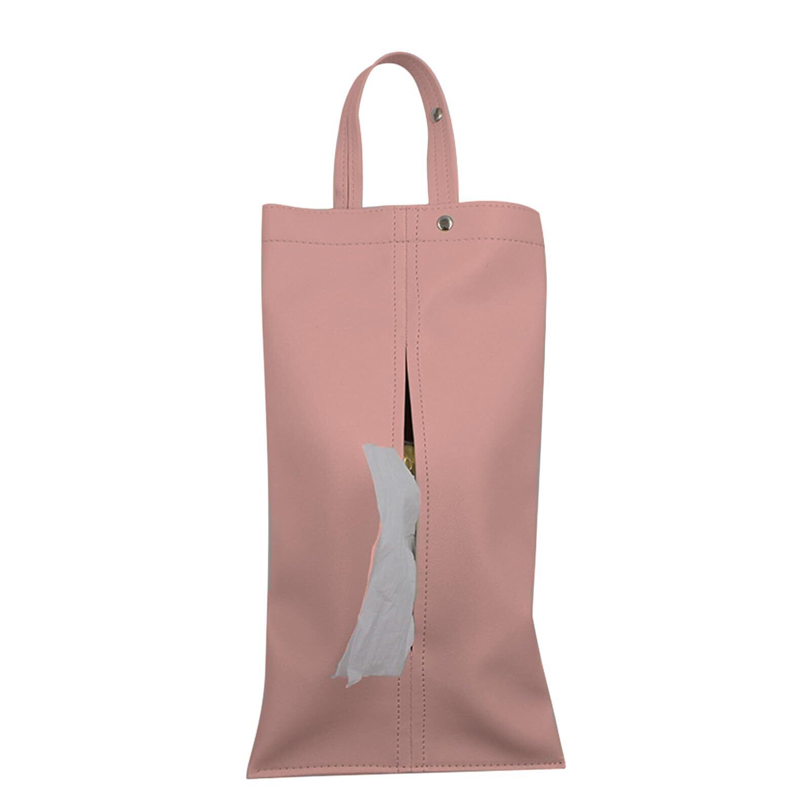 [クヌエ]ティッシュケース 吊り下げ 車 壁掛け ティッシュカバー おしゃれ かわいい 布製 シンプル インテリア 小物収納 6色展開 サイズ2段階調節 (ピンク)
