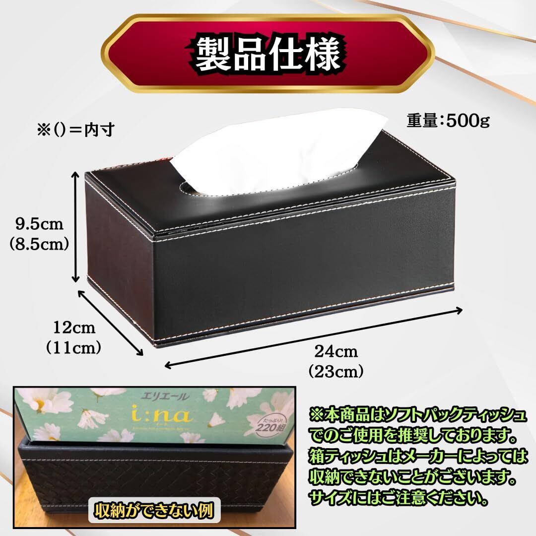 【製品仕様】サイズ:24x12x9.5cm(内寸23x11x8.5cm) 重量:500g ※本商品はソフトパックティッシュでのご利用を推奨しております。 箱ティッシュはによって収納できないことがありますので、サイズにはご注意ください。