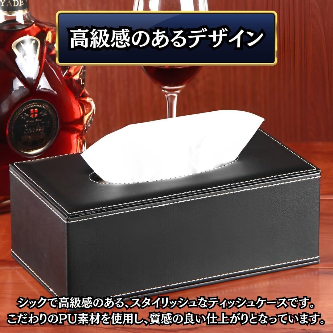 【スタイリッシュなデザイン】室内や車内など様々な場面にマッチする、シックで高級感のあるデザインのティッシュケースです。こだわりのPUレザー素材を使用し、質感の良い仕上がりとなっております。