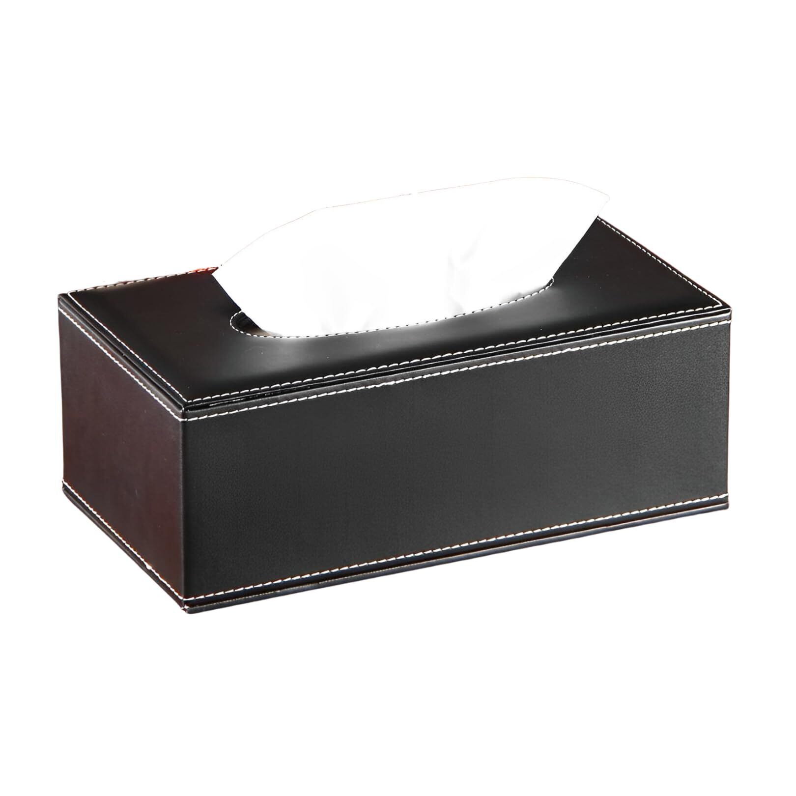Charmoon ティッシュケース ソフトパック用 レザー 革 軽量 頑丈 防水 シンプル 北欧 おしゃれ エレガント 卓上 (ブラック)