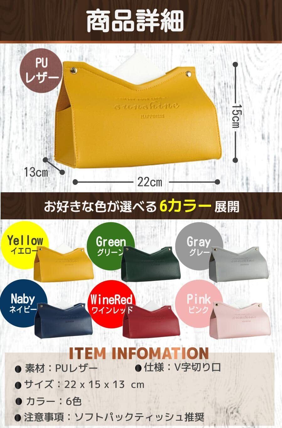 【商品詳細】素材:PUレザー/サイズ:22 x 15 x 13 cm/カラー:6色/注意事項:ソフトパックティッシュ推奨