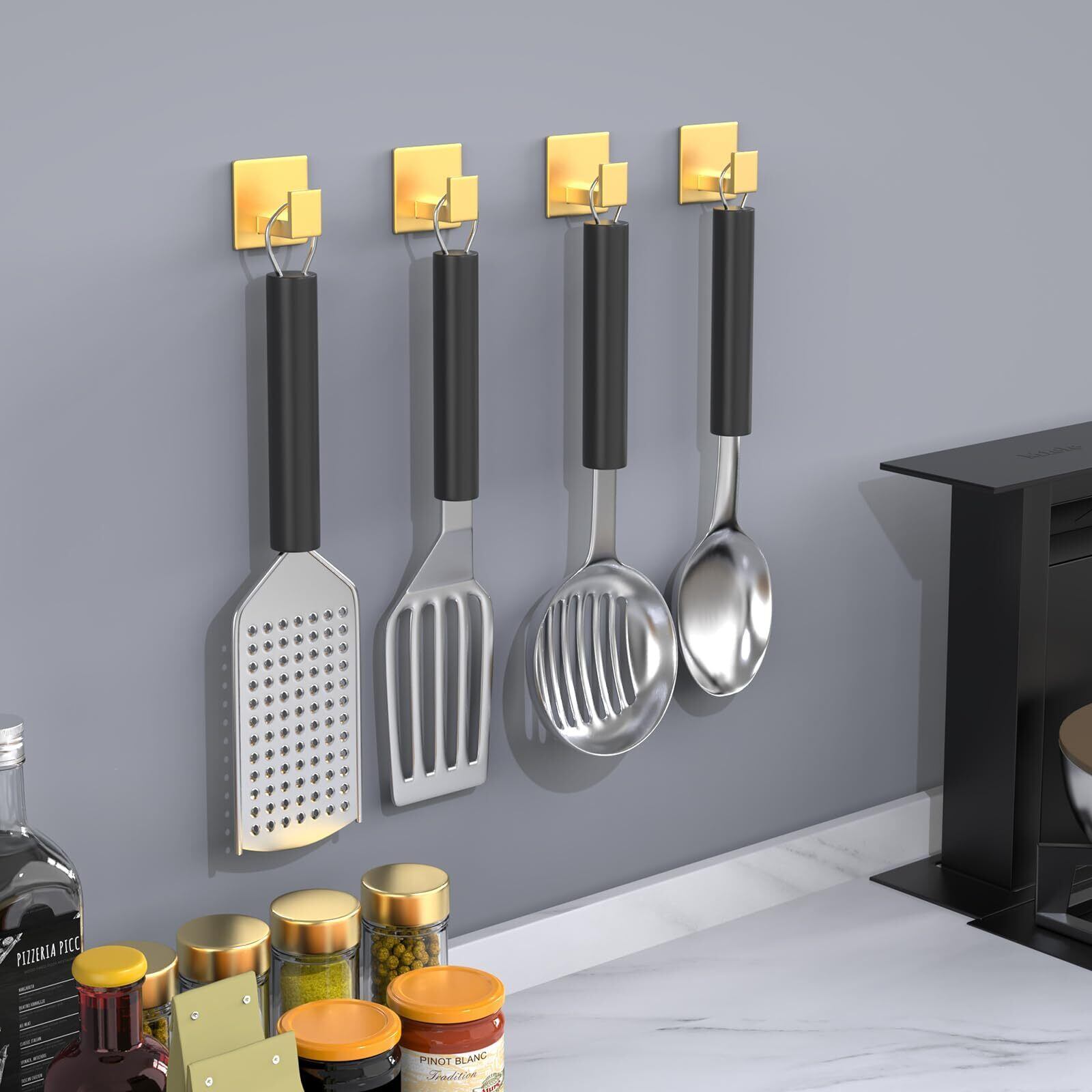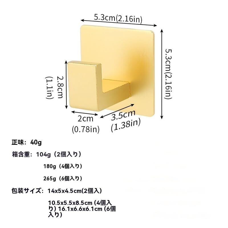 [YNOBUN] 七字フック レトロ キッチン 玄関 浴室用 錆びない 強力シール式フック 高負荷対応 壁付け型 タオル、コート、鍵、キッチン用品などを掛けることができる 2 個セット(ゴールド)