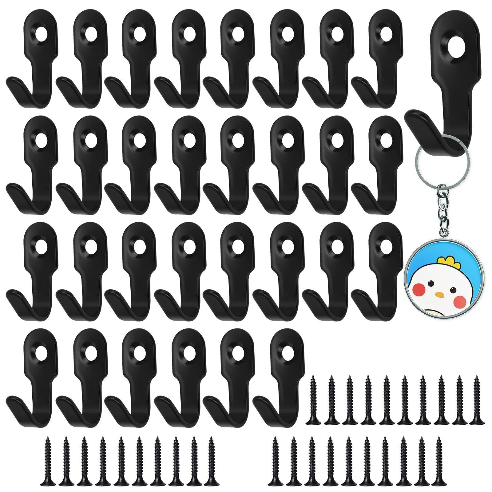 壁掛けフック 30個セットステンレス アンティーク 調 ウォールフック 鍵ホック コート掛け ハンガーフック 高耐荷重 コート帽子 洋服掛け キッチン用 フック 玄関 浴室 寝間 台所 キッチン 27 mm ネジ付き (ブラック)