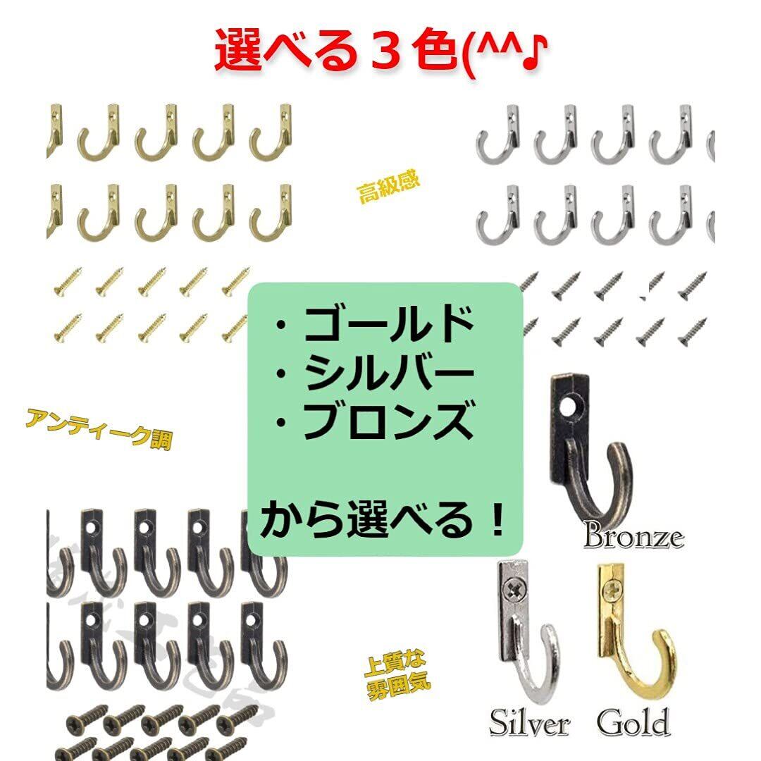 アンティークフック 調 壁 ネジ付き 洋服 コート 帽子 ハンガー シンプル かわいい 20個 セット (金)